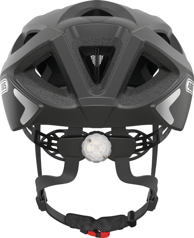 Abus Aduro 2.0 helm L (58-62cm) Titan • In-Mold voor langdurige verbinding van de buitenschaal en het schokabsorberende materiaal (EPS) • Afneembaar vizier • Zoom Evo Adult - precies verstelsysteem met handige draaiknop • LED licht in draaiknop biedt extra veiligheid in het donker • Aanpassing maat door middel van twee-componenten volle ring wat zorgt voor optimale stabiliteit en flexibiliteit • Zeer goede ventilatie door 11 luchtinlaten en 3 luchtuitlaten, die onderling verbonden zijn • Ingeschuimd insectengaas • Uitneembare, wasbare paddings voor maximaal draagcomfort • In kleur afgestemde banden met zacht oppervlak en eenvoudige instelling met praktische slider • Grote passieve veiligheid door grote reflectoren met hoge reflectiewaarde
