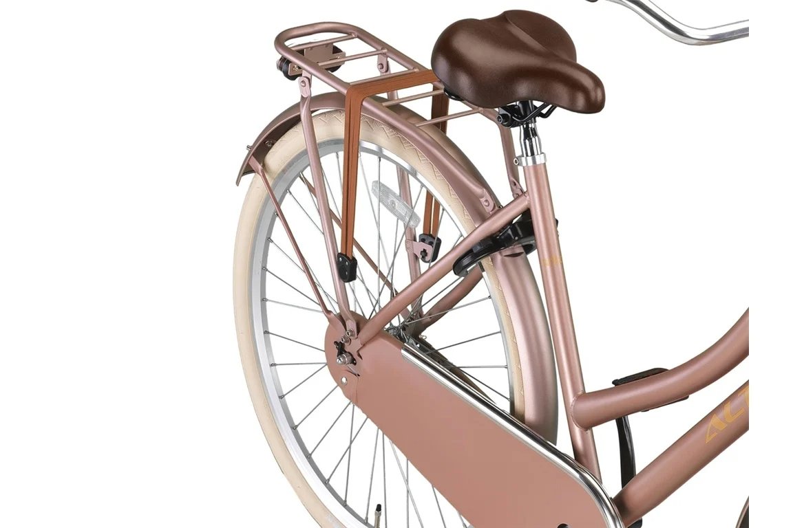 De Altec Urban Transportfiets 28 inch lavender is een stevige fiets die perfect is voor het vervoeren van u en eventuele bagage. De voordrager is wat de Altec Urban een echte topper maakt. Hierop kan een leuke krat of mand geplaatst worden voor een speels en persoonlijk effect. Een tas hoeft zo niet langer aan het stuur gehangen te worden. Het frame is zeer stevig en robuust gevormd, het is namelijk gemaakt van staal. Veiligheid is van groot belang op elke fiets en daarom zit er dan ook een betrouwbare terugtrap rem op de Altec Urban. Door het standaard kan de fiets bijna overal neergezet worden. Wilt u de fiets veilig en onbeheerd achterlaten? Gebruik dan het ringslot wat op de fiets zit. In het donker helpt de verlichting u met het maken van een veilige rit.
