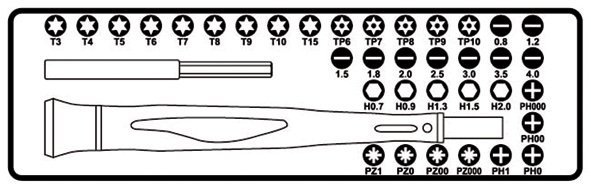 Beta 1256/C36-2 Microschroevendraaier met 36 verwisselbare 4-mm bits en magnetisch verlengstuk Voor precisie werkzaamheden In een compacte geanodiseerde aluminium box Gewicht: 200 g 130x60x35 mm - 200 g 1256TX T3 - T4 -T5 - T6 - T7-T8 - T9 - T10 - T15 1256RTX T6 - T7 - T8 - T9 - T10 1256LP ; 0,8 - 1,2 - 1,5 - 1,8 - 2 - 2,5 - 3 - 3,5 - 4 mm 1256PE ; 0,7 - 0,9 - 1,3 - 1,5 - 2 mm 1256PH PH000 - PH00 - PH0 - PH1 1256PZ ; PZ000 - PZ00 - PZ0 - PZ1 1256/20 1256/30