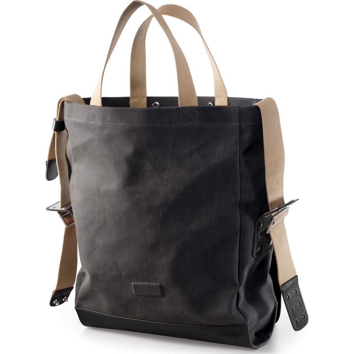 Brooks tas Brixton canvas asfalt. De Brixton is een zeer veelzijdige tas, die gemakkelijk uitgebreid kan worden. Voor gebruik als een schoudertas en heeft een band die lijkt op die van de Barbican schoudertas. De uiteinden kunnen aan elkaar worden geklikt om optimale stabiliteit tijdens het rijden te garanderen. De afmetingen van de tas zijn vergelijkbaar met onze Hoxton mand, waarin hij gemakkelijk kan worden ondergebracht bij het winkelen. Kleur: Zwart. Afmeting:H32-45xB36xD12cm. Inhoud:14-19Liter. BB013 A3 7212