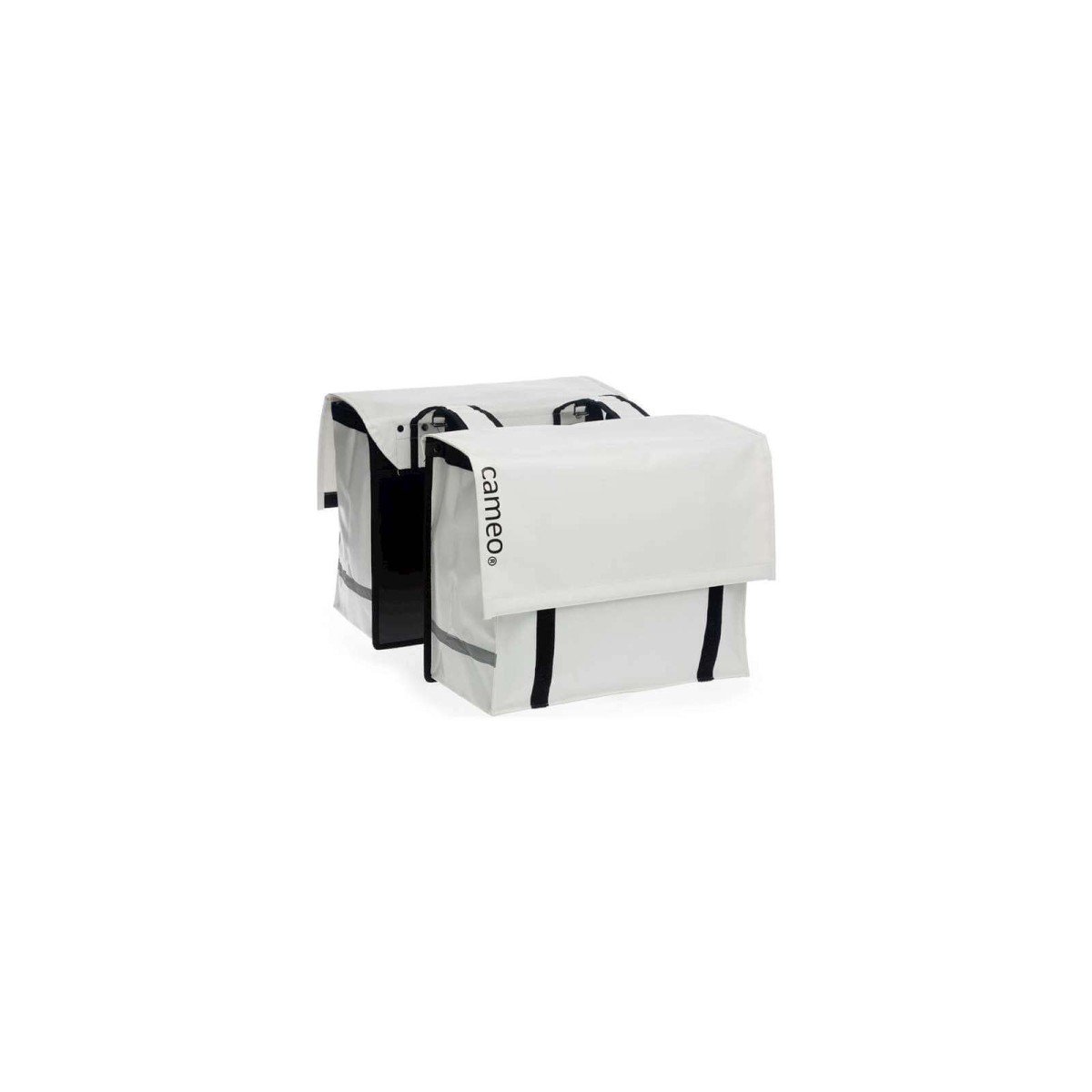Cameo dubbele bisonyl White/wit, 46 liter, 39 x 33 x 18 cm, Waterdicht en ijzersterk bisonyl, Sluiting dmv klittenband, Ruimte voor snelbinders, reflectiestrepen