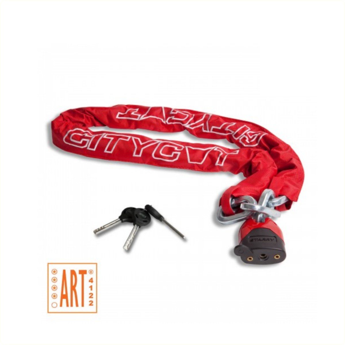 Het 180 cm lange, rode kettingslot van Starry Citycat biedt een uitstekende bescherming voor een scooter- of motorfiets, dankzij het ART 4 keurmerk. Het slot is weerbestendig en gemaakt van gehard staal. Daarnaast beschikt het slot over een vaste kop en een schuifkaart met alle informatie. Wordt geleverd met een hangslot en 3 sleutels.