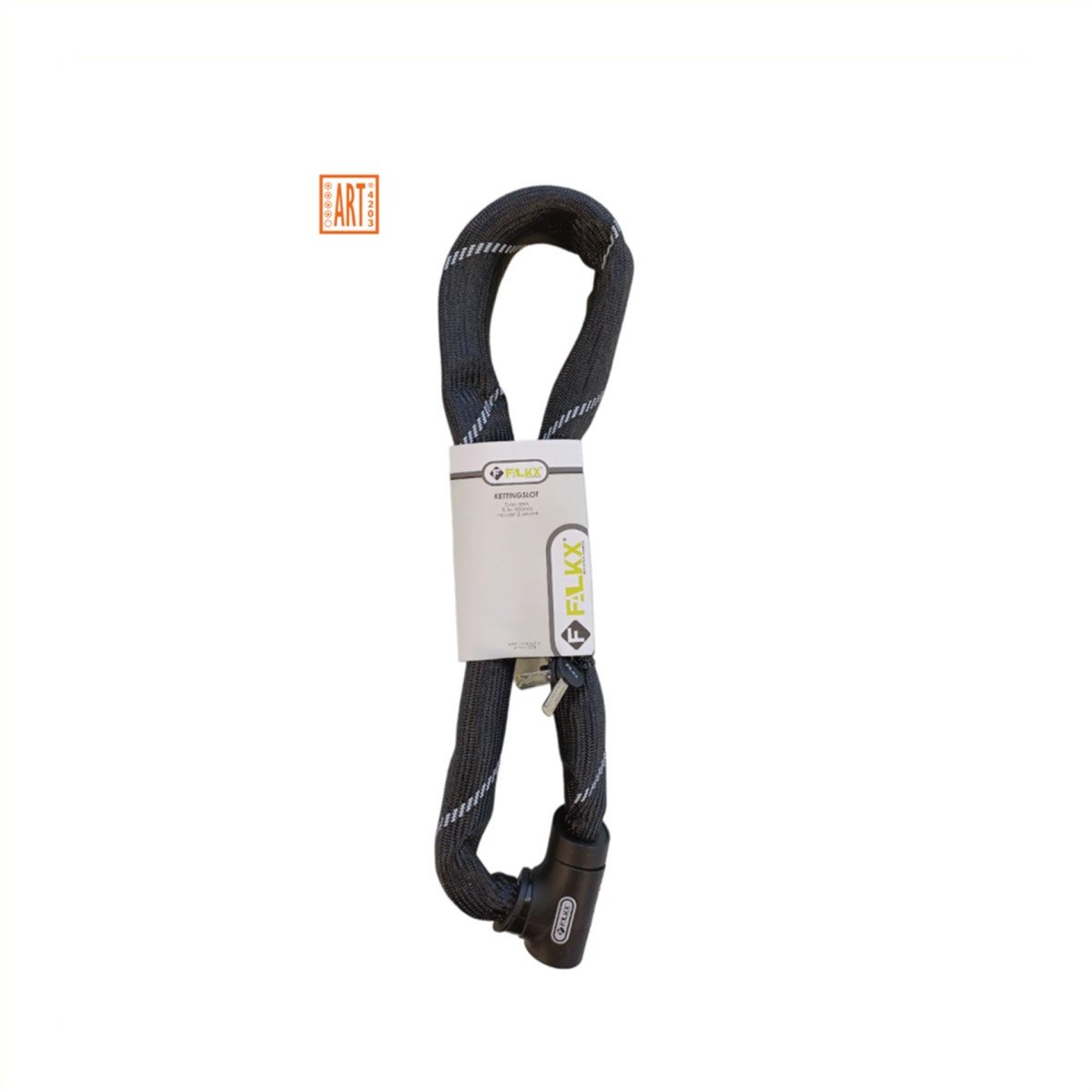 FALKX Iceman 8/1100 kettingslot • als "Goed"getest in de ANWB Kampioen oktober 2022 • Keurmerk: ART** (2 sterren goedgekeurd) • Kleur: Zwart • Lengte: 110 cm • Diameter schakels: 8.3 mm • Gehard stalen ketting • Uitgevoerd met luxe slotkop