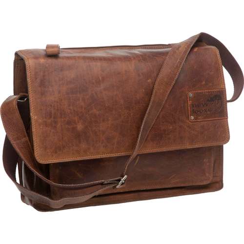 New Looxs schoudertas/pakaftas 331 Barolo cognac, Exclusieve lederen schoudertas met gepolsterd insteekvak voor PC notebook, Verstelbare schouderband, Hoofdvak en verschillende kleinere vakken, Afdekbare haken voor bevestiging op bagagedrager, 13 liter, 41 x 31 x 10 cm, materiaal leer