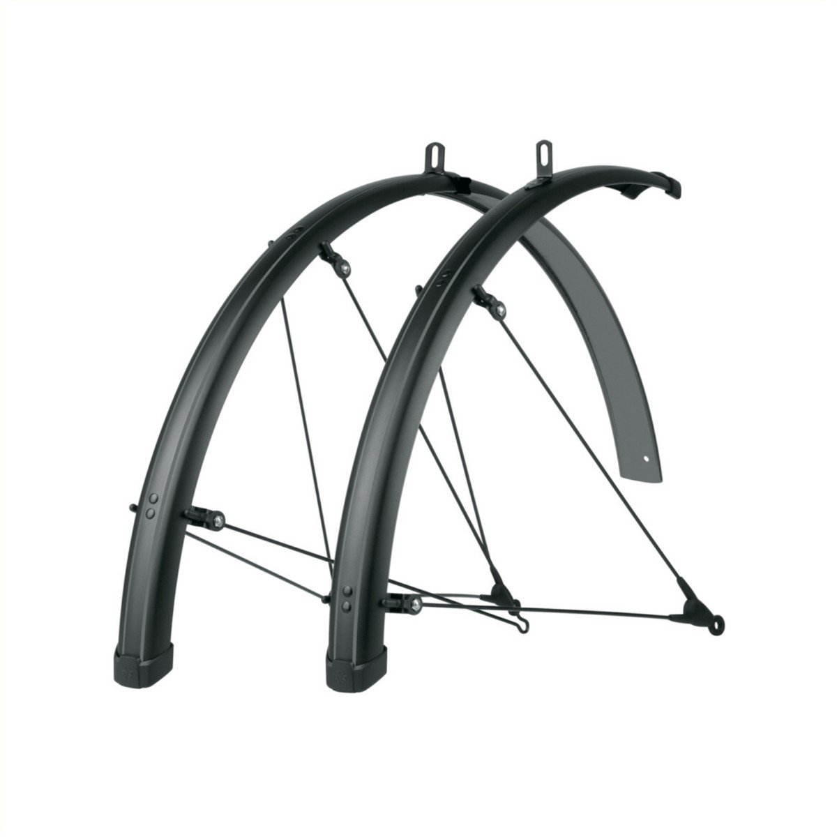 Spatbordenset in coole krijtstreep-look Nu nog breder, langer en stijlvoller! De matzwarte SKS spatbordenset BLUEMELS STRIPES in een grijze krijtstreep-look geeft de fiets een geweldige uitstraling. De zwarte stangen en de randbescherming met SKS-logo maken de strakke look helemaal af. De verlengde profielen zorgen voor een optimale bescherming tegen spatwater en vuil. Uitstekende bescherming dankzij langer profiel Dankzij de flexibele sandwichconstructie, waarin uiterst dunne aluminium strips zijn ingebed in een kunststof coating, zijn de spatborden extreem robuust, stijf en corrosiebestendig. Het ASR veiligheidssysteem voorkomt blokkeren van het wiel als er een tak tussen de spaken komt. Vaste bruggen en V-stangen zorgen voor een snelle montage met veel instelmogelijkheden. Inclusief stangenset, schuifbrug en bevestigingsmateriaal. • Aluminium/kunststof sandwichconstructie • Robuust, stijf en corrosiebestendig • ASR beveiligingssysteem • V-stangen voor eenvoudige montage • Vaste bruggen van roestvrij staal • Made in Germany artikelnummer: 11829 materiaal: Kunststof kleur: zwart-matt wielmaat: 27,5" (650b)", 28", 29 " wielbreedte in inches: 1.2-1.8 mm wielbreedte in mm: 32-47 mm lengte spatbord voor: 680 mm lengte spatbord achter: 1185 mm