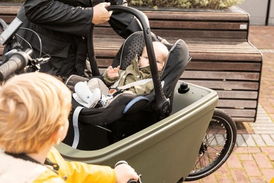 Steco Mini-Mee bakfiets inclusief adapters, Met de Steco Mini-Mee klik je gemakkelijk de baby autostoel in de bakfiets, de manier om veilig jouw baby te vervoeren. Door de verende werking van de drager heeft deze een goed dempende werking voor je baby. De babystoel staat niet op de bodem, maar is bevestigd in de adapter. Er is voldoende plek over voor andere kinderen om op het bankje te zitten. Tijdens het fietsen kun je je baby goed zien en door het compacte ontwerp kun je gemakkelijk veel boodschappen meenemen.